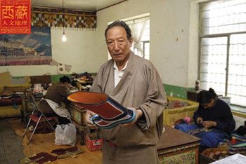 赤列塔青成年后,適逢西藏實(shí)行民主改革,拉薩市城北區(qū)的夏薩蘇和沖賽康各成立了一家“鞋業(yè)互助社”,八位鞋匠師傅每人掏50元錢入股,赤列塔青父子就這樣成了互助社的第一批成員?!昂髞淼氖虑樽兊煤軓?fù)雜!”赤列塔青說。從企業(yè)名稱和辦公地點(diǎn)的多次變更,可以了解到搞民族手工業(yè)不是一件容易的事情。西藏平叛后這個鞋業(yè)互助社改名勝利合作社,后來又叫前進(jìn)鞋帽合作社,再后來改叫城關(guān)區(qū)鞋一廠,現(xiàn)在的名字是彩泉民族手工業(yè)公司。原來的廠址在老沖賽康附近,后來搬到木鹿寺后面,現(xiàn)在駐進(jìn)城北的佳村曲美,廠名變了,地址變了,不變的是人。赤列塔青認(rèn)為,只要人在,企業(yè)就有希望。