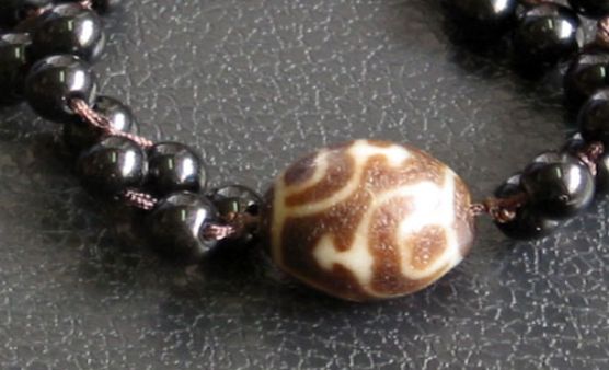 天珠,藏語(yǔ)中又稱為“瑟。”為藏密七寶之一。藏族同胞認(rèn)為天珠是“天降石”,視為“活的寶石”,受到虔誠(chéng)膜拜和恭敬收藏供養(yǎng),世代相傳。