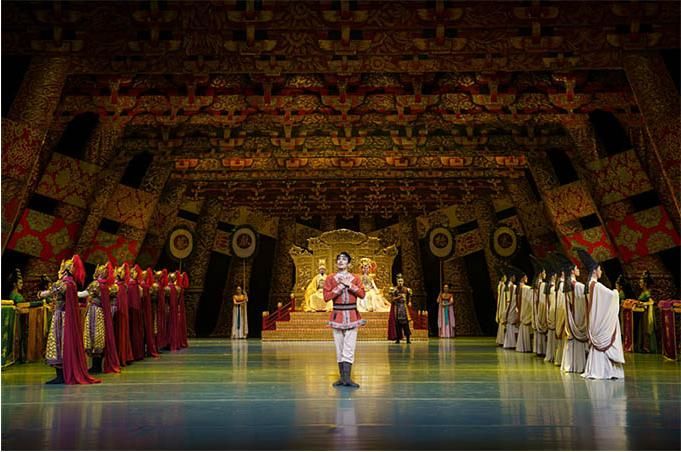 “大家可以看到,在這部舞劇中既有非常濃郁的盛唐風格,也有非常鮮明的西域文化特點?!蔽鑴 秱鹘z公主》總導演左青表示。舞臺上的每一幕都有情景定位、情節(jié)助推、情感渲染、情調(diào)濡潤,兼具依托文本結(jié)構(gòu)的真情訴說和舞蹈本體的詩意表達,構(gòu)建起舞劇的整體形式感。