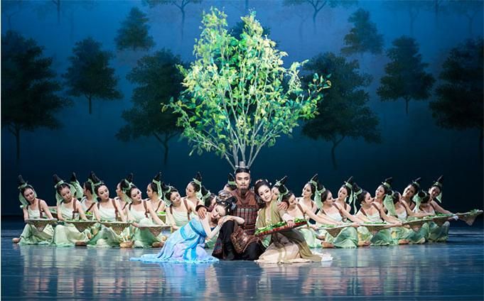 舞劇《傳絲公主》以蠶絲為戲劇元素,以蠶桑女寧兒與于闐王子尉遲的愛情為外在線索,以盛唐時中原與西域的交流往來為隱伏線索,將凄美的愛情故事與壯闊的家國情懷交織在一起,引領(lǐng)觀眾穿越到大唐盛世,感受繁興的絲路文化和豐富多彩的民族風情。