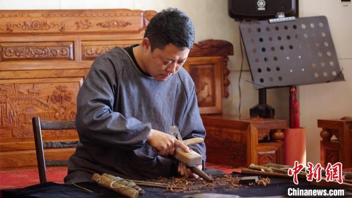 李曉盼在手工制作嗩吶?!黔?攝