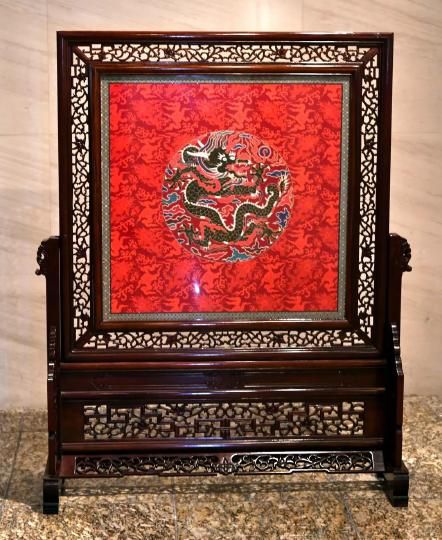 云錦《真金孔雀羽大團(tuán)龍》地屏