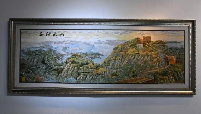 《萬(wàn)里長(zhǎng)城》是金文集數(shù)年之功完成的云錦巨制。觀者立于高山之巔,長(zhǎng)城從峰巒疊嶂間伸向遠(yuǎn)方,更有一旁朝霞相伴,使畫(huà)面錯(cuò)落有致,層次豐富。