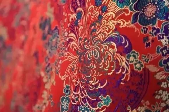 南京云錦大量使用金線,逐花異色,質(zhì)地堅(jiān)實(shí),花紋渾厚優(yōu)美,色彩濃艷莊重。配色運(yùn)用 “色暈 ”層層推出主花,且從云錦的不同角度觀察,繡品上花卉的色彩是不同的。