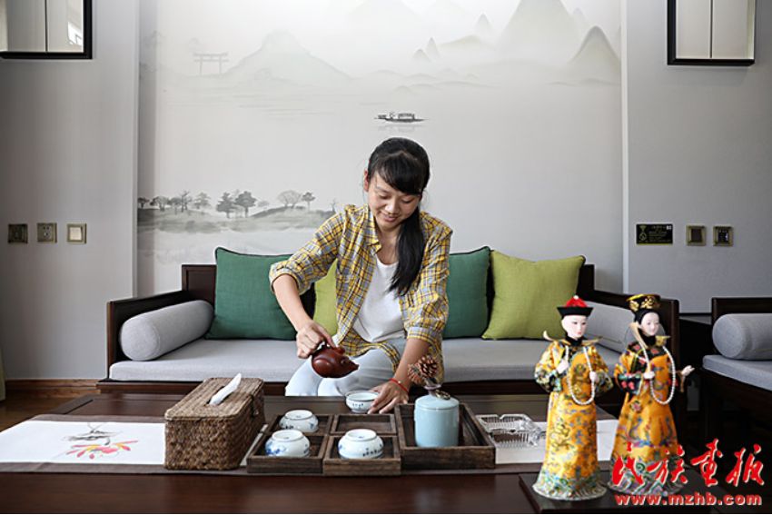 “之所以命名為‘牧馬人’,是因為草原上奔騰的駿馬能凸顯當?shù)氐拿褡逄厣?,人們都向往信馬由韁的生活?!焙阌^遠方網(wǎng)絡(luò)科技有限公司“隱居鄉(xiāng)里”項目經(jīng)理徐耀玲介紹說,牧馬人是把閑置的滿族民居重新設(shè)計改造的精品高端民宿酒店,讓游客深度體驗滿族文化。站在修葺一新的小院里,記者看到舊馬鞍、嘎啦哈等特色物件比比皆是,書房里還有《紅樓夢》、納蘭詞等書籍供游客賞閱。