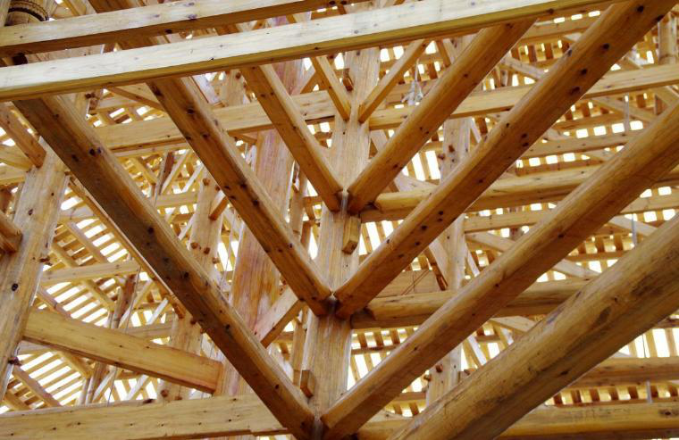 中國的木建筑構(gòu)架一般包括柱、梁、枋、墊板、桁檁、斗拱、椽子、望板等基本構(gòu)件。這些構(gòu)件相互獨(dú)立,需要用一定的方式連結(jié)起來才能組成房屋。在中國建筑中,原則上采取榫卯連接的方式,必要時(shí)也會用鐵釘。