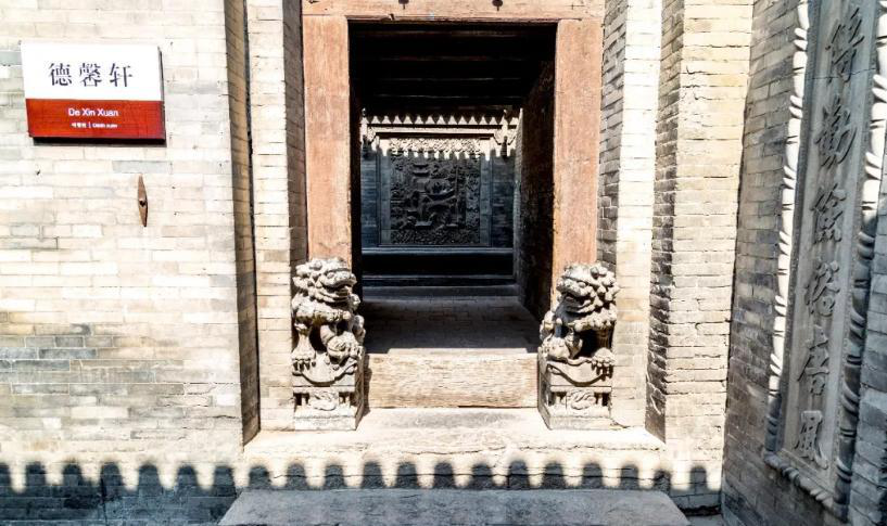 正廳大門之上的門楣,是一塊精美絕倫的木雕,采用雕、嵌、描、繪等多種裝飾技法,將喜鵲鬧春的場景表達得惟妙惟肖,具有極高的藝術(shù)價值;除了雕刻著代表中國傳統(tǒng)文化精神的梅蘭竹菊外,許多地方的門窗,尤其是專供男孩子們讀書的庭院中的窗子,都雕成簡潔古樸的書本或折扇的形狀,表達了“萬般皆下品,唯有讀書高”的文化追求。