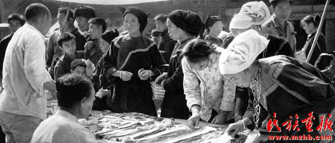 1980年,全國民族地區(qū)落實黨的民族政策,切實尊重少數(shù)民族的傳統(tǒng)習慣,轟轟烈烈地恢復民族傳統(tǒng)集市,以最短的時間恢復生產(chǎn)、發(fā)展自由貿易、豐富群眾生活。圖為貴州苗族農(nóng)村市場開始活躍起來《民族畫報》1982年第1期