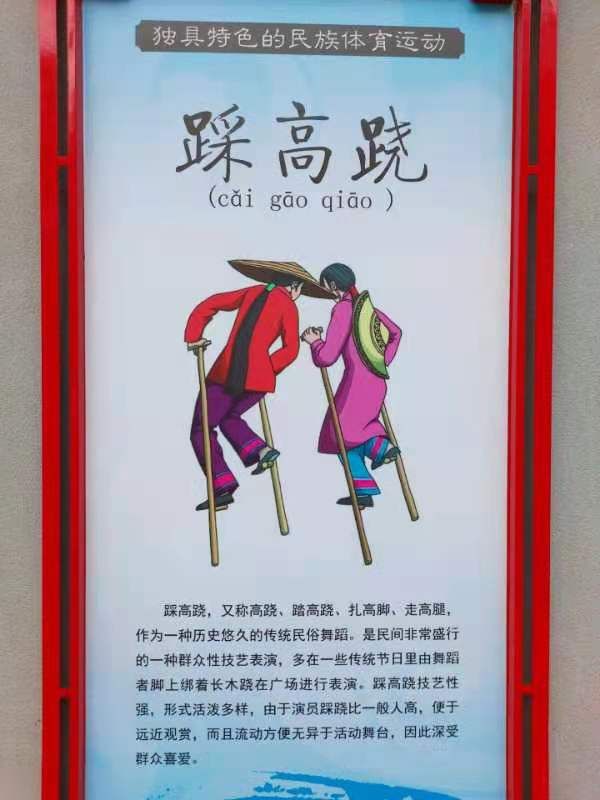 踩高蹺,又稱(chēng)高蹺、踏高蹺、扎高腳、走高腿,作為一種歷史悠久的傳統(tǒng)民俗舞蹈。是民間非常盛行的一種群眾性技藝表演,多在一些傳統(tǒng)節(jié)日里由舞蹈者腳上綁著長(zhǎng)木蹺在廣場(chǎng)進(jìn)行表演。踩高蹺技藝性強(qiáng),形式活潑多樣,由于演員踩蹺比一 般人高,便于遠(yuǎn)近觀(guān)賞,而且流動(dòng)方便無(wú)異于活動(dòng)舞臺(tái),因此深受群眾喜愛(ài)。
