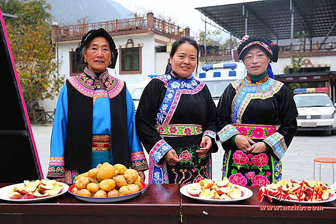 羌族群眾自發(fā)提供當?shù)赝撂禺a(chǎn)。