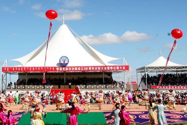 成立于1958年的鄂溫克自治旗是中國(guó)三個(gè)少數(shù)民族自治旗之一,位于內(nèi)蒙古自治區(qū)東部,大興安嶺西麓、呼倫貝爾大草原東南部,由鄂溫克、蒙古、漢、達(dá)斡爾等21個(gè)民族組成,總?cè)丝诮咏?5萬(wàn)。絢麗多姿的民俗風(fēng)情,使鄂溫克大地蘊(yùn)藏了濃厚的民族特色文化。鄂溫克旗每年舉辦“鄂溫克瑟賓節(jié)暨賽牛大會(huì)”、“內(nèi)蒙古冬季那達(dá)慕暨鄂溫克冰雪旅游節(jié)”、“敖包相會(huì)國(guó)際情歌節(jié)”、“馬文化節(jié)”、“伊敏河之夏文藝匯演”等活動(dòng),這些特色鮮明的文化活動(dòng)也逐漸成為自治旗民族特色文化品牌。隨著全旗文化事業(yè)的蓬勃發(fā)展,鄂溫克旗先后獲得“全國(guó)文化先進(jìn)縣”、“全國(guó)體育先進(jìn)縣”、“全區(qū)民間歌舞藝術(shù)之鄉(xiāng)”、“全國(guó)民族團(tuán)結(jié)進(jìn)步模范集體”等榮譽(yù)稱號(hào)。