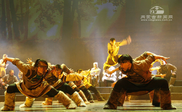 演員們的表演也頗為出色。參演的60多名演員全部來(lái)自鄂溫克自治旗烏蘭牧騎,這是一支以年輕人為主的隊(duì)伍,他們?cè)谖枧_(tái)上的精彩表現(xiàn)給這部歷史題材的歌舞劇增添了青春的活力。比如“搶樞”一場(chǎng),不僅形象地再現(xiàn)了鄂溫克民間一項(xiàng)傳統(tǒng)娛樂(lè)活動(dòng)——“搶樞”,突顯了年輕人活潑好動(dòng)的特點(diǎn),而且傳達(dá)出鄂溫克年輕人在遷徙途中不畏艱險(xiǎn)、苦中作樂(lè)的頑強(qiáng)精神。尤其是在本場(chǎng)最后,小伙子們一段奔放狂野的群舞盡顯陽(yáng)剛之美,展現(xiàn)了鄂溫克民族的豪爽與激情。