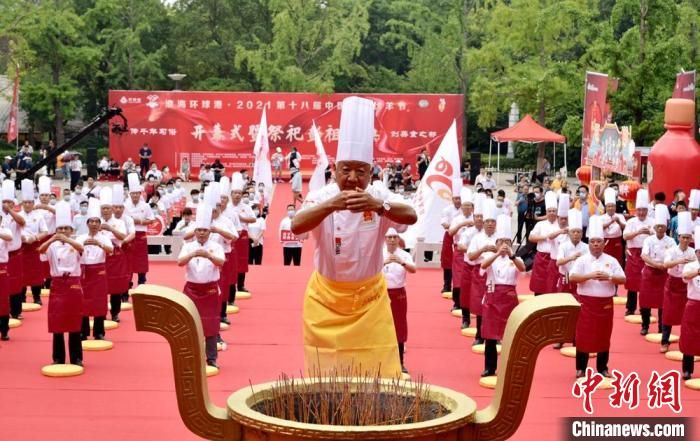 11日上午,2021第十八屆中國彭祖伏羊節(jié)在江蘇徐州彭祖園舉行開幕式,徐州當地再次呈現一年一度的“萬人空巷吃伏羊”民俗奇觀。作為中國彭祖伏羊節(jié)開幕式的重頭戲,來自全國各地數百名烹飪大師再次齊聚彭祖祠共同祭拜華夏烹飪鼻祖彭祖。烹飪大師們統(tǒng)一著裝,整齊列隊,行叩拜大禮,聲勢浩大,莊嚴肅穆,十分壯觀。