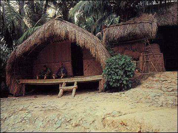 船型屋作為黎族最古老的民居,有高架船型屋與低架(落地式)船型屋之分,其外形像船篷,拱形狀,用紅、白藤扎架,拱形的人字屋頂上蓋以厚厚的芭草或葵葉,幾乎一直延伸到地面上,從遠(yuǎn)處看,猶如一艘倒扣的船。其圓拱造型利于抵抗臺風(fēng)的侵襲,架空的結(jié)構(gòu)有防濕、防瘴、防雨的作用,茅草屋面也有較好的防潮、隔熱功能。而且能就地取材,拆建也很方便。鑒于這些優(yōu)點,船形屋得以世代流傳下來。