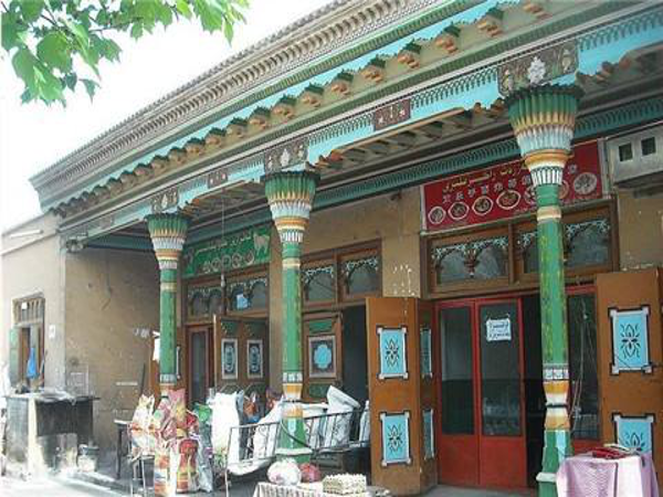 多用虛實對比,重點點綴的手法,喜歡采用磨磚拼花、石膏花、彩畫、磚雕、木刻等裝飾,裝飾圖案以及窗欞花飾,多為花草或幾何圖形;門窗口多為拱形;色彩則以白色和綠色為主調(diào),表現(xiàn)出伊斯蘭教的特有風格。