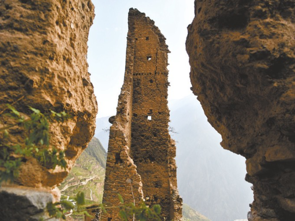 最讓楊慶平感到可惜的是寨子里的碉樓。在他的印象中,寨子周邊有7座碉樓,修建得非常堅固,上面有觀察孔和射擊孔,通過木梯可以登上二三十米高的碉樓云臺,登高遠眺,大寨內(nèi)外盡收眼底?,F(xiàn)在只剩下一座碉樓矗立在天地之間,高40多米,上面長滿了雜草。