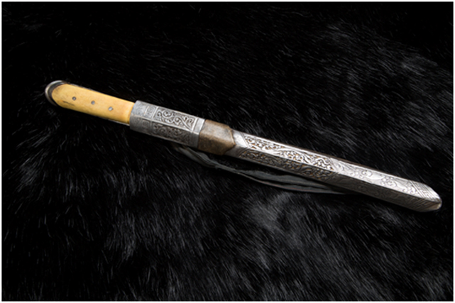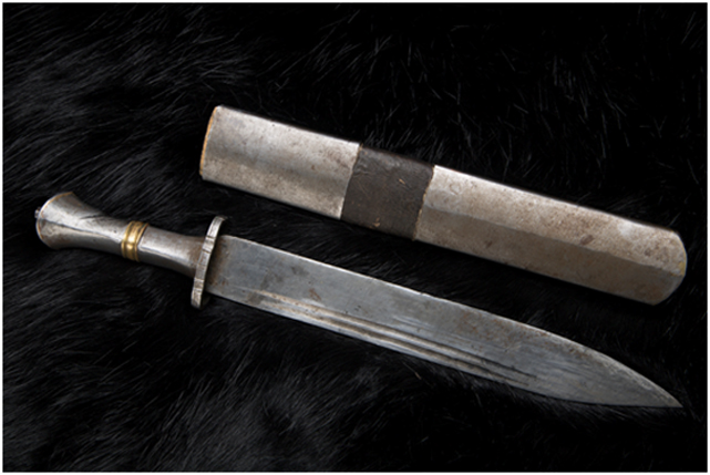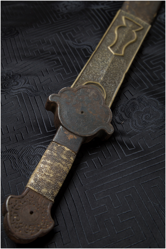 戰(zhàn)刀,鐵柄,銅浮雕刀鞘,明代