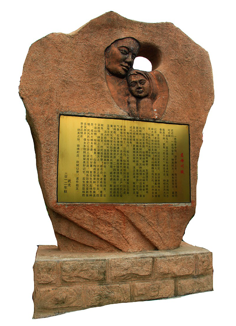 從花藤環(huán)繞的村門進(jìn)入村子,一座巨石浮雕映入眼簾,上刻慈母孝子,下刻慈母川賦。沿新修的主干道前行,左側(cè)民居古樸,錯(cuò)落有致,庭院優(yōu)雅,賞心悅目;右側(cè)河水清澈,錦鯉暢游,小橋流水,山影斜疏。新建的村民文化廣場,與對面的滿族風(fēng)情展示墻、健身廣場隔路相望。路邊高大的垂楊柳上懸掛著長長的秋千,悠閑的老人正坐在上面曬太陽。
