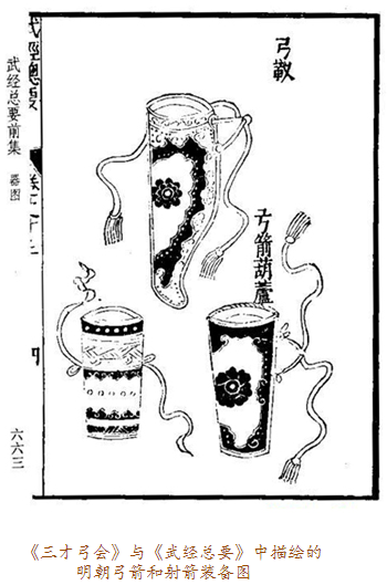 當(dāng)弓囊出現(xiàn)在眼前時(shí),我們應(yīng)當(dāng)想到它的另一半——箭囊。實(shí)事上,古代盛裝弓箭的器物被稱為櫜鞬(gāo jiàn),櫜盛箭,鞬裝弓,多以皮革制作。比如明十三陵出土的萬歷皇帝陪葬品櫜鞬,就用皮革縫制,外敷黃色素緞,金繡龍紋,鑲嵌金飾件及各色寶石。一般來說,弓囊為上寬下窄的袋形,箭囊則為長方形。在蒙古語中,弓囊與箭囊合稱為“撒答”。因?yàn)椤按稹迸c“袋”讀音相近,所以元代的漢族作家便在作品中將之寫為“撒袋”。這樣,“撒袋”一詞便入了漢語詞匯,特指裝弓盛箭的袋子。