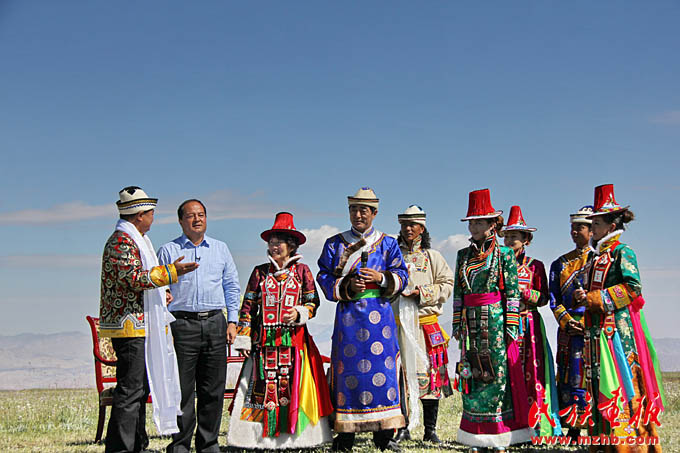 在 CCTV《相約》欄目錄制現(xiàn)場,裕固族人民向全國觀眾介紹肅南縣及裕固族文化(肅南裕固族自治縣縣委宣傳部 供圖)