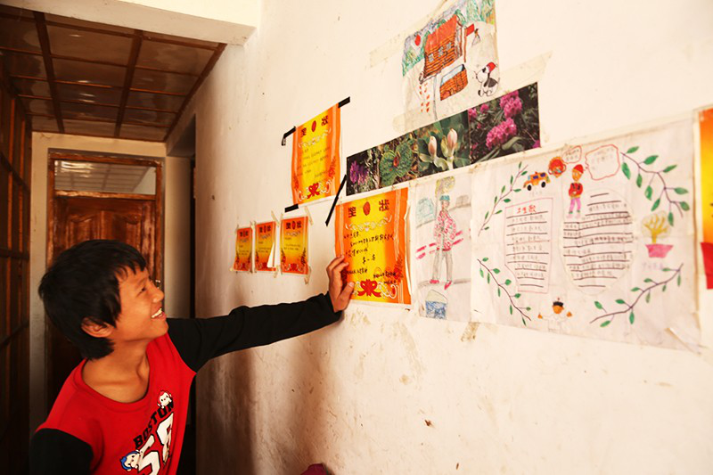 龍初杰與他的獎(jiǎng)狀和兒童畫《我的家》