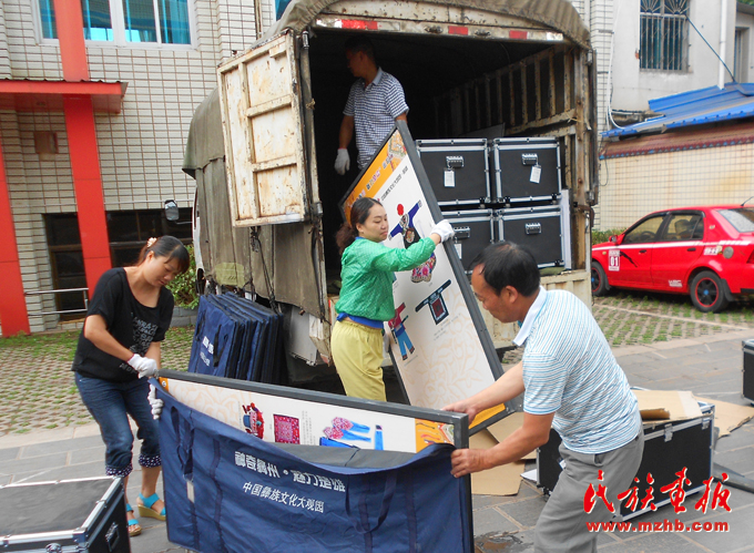 為了讓流動(dòng)博物館走近群眾,博物館工作人員不畏辛苦,認(rèn)真工作