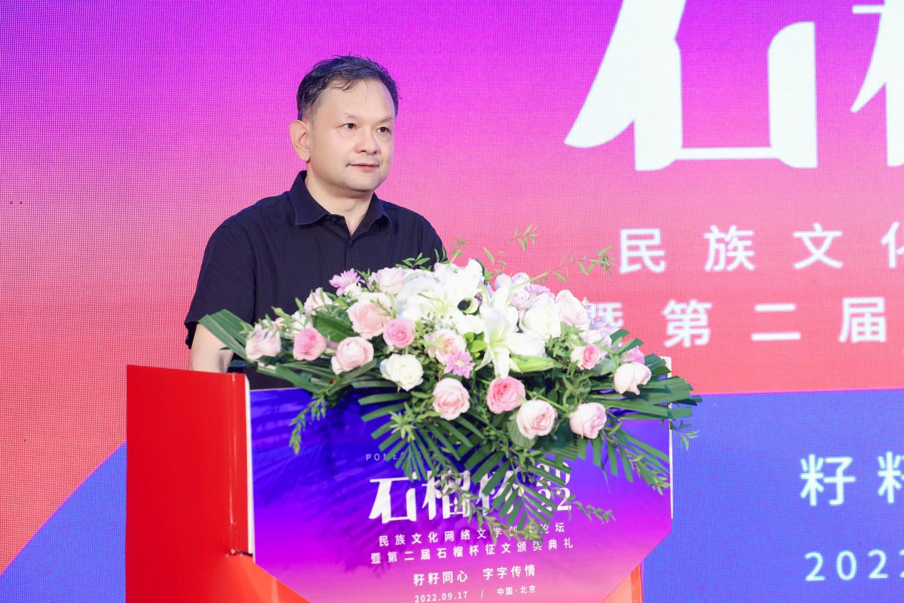 2022年9月17日,民族文化網(wǎng)絡(luò)文學(xué)創(chuàng)作論壇暨第二屆石榴杯征文頒獎(jiǎng)活動(dòng)在民族文化宮舉行。本次活動(dòng)得到了國(guó)家民委所屬中國(guó)少數(shù)民族文化藝術(shù)促進(jìn)會(huì)和中國(guó)紀(jì)實(shí)文學(xué)研究會(huì)的指導(dǎo)與支持,由閱文集團(tuán)、北京天成嘉華文化傳媒主辦,天成達(dá)星國(guó)際傳媒承辦。