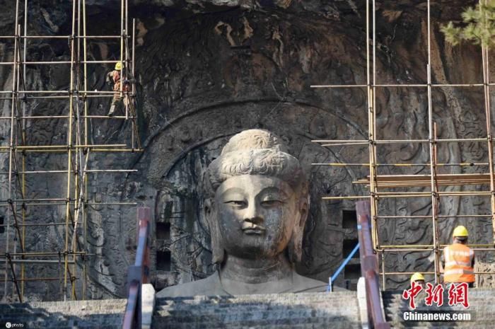 龍門石窟奉先寺大型滲漏水治理和危巖體加固保護工程已經(jīng)啟動,預計工期270天。這是20世紀70年代以來、時隔50年,龍門石窟奉先寺再次啟動大型保護工程。