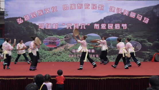 祭祀完成后,當(dāng)?shù)氐哪信仙俅┲约旱拿褡宸?,興高采烈地為客人表演極具民族特色的歌舞。連周邊的苗族同胞也來為布依族節(jié)日慶賀,登臺(tái)表演共敘友誼。一些村民們自發(fā)性地登臺(tái)參與演出,雖然質(zhì)樸卻不失誠意。