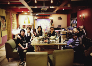 民宿不提供餐食,但設(shè)有開放式廚房,天南海北的有緣人齊聚于此,各顯身手,呈現(xiàn)出一大桌美食,對(duì)酒當(dāng)歌,歡笑晏晏,民宿的隨性,讓人恍若回到家里一樣溫暖、親切。