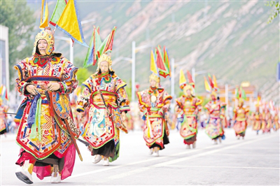 街頭巡游的格薩爾藏戲方隊(duì)