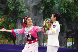 72歲高齡的布依族舞蹈家羅星芳(國(guó)家一級(jí)演員)和望謨布依女兒、中國(guó)海政歌舞團(tuán)曾小燕(國(guó)家二級(jí)演員)為大家同臺(tái)演繹布依經(jīng)典民歌“好花紅