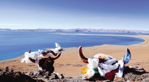 放眼望去,羌塘草原上有許多大大小小的湖,它們?nèi)纭疤焓怪疁I”“天空之鏡”,毫無規(guī)則地鑲嵌在草原上。湖泊,在我們的藏族司機桑堆師傅口中是蒼茫大野的靈魂,是神族們居住的水晶宮。所以,每有湖泊出現(xiàn)在桑堆師傅的視野里時,他總是表情肅穆,口念六字真言以祈求平安。