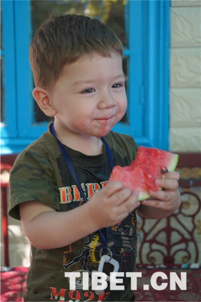 “馕是當(dāng)?shù)厝穗x不開的食物,包括這里的漢族群眾,現(xiàn)在都已經(jīng)習(xí)慣了這樣的飲食。我曾見過當(dāng)?shù)匾恍h族朋友到內(nèi)地一趟,回來后第一件事就是吃拌面、烤肉,喝奶茶,我們多個民族的人長期居住在這里,生活早已交融在一起了?!碑?dāng)?shù)鼐用窈Aβ?阿吾提對記者說。圖為當(dāng)?shù)靥厣朗场?/p>