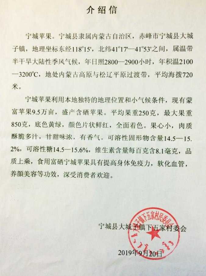 寧城蘋果是寧城縣巴林果樹試驗場與沈陽農(nóng)業(yè)大學(xué)合作,于1978年以哈爾濱東光蘋果為母本和日本富士蘋果為父本雜交而來,經(jīng)過十幾年時間選育而成的蘋果。1997年內(nèi)蒙古自治區(qū)科學(xué)委員會組織國內(nèi)著名果樹專家進行鑒定,定名為蒙富,寓意內(nèi)蒙古的富士。2015年7月“寧城蘋果”通過國家工商總局商標(biāo)局注冊,取得“寧城蘋果”地理標(biāo)志證明商標(biāo),推動了本地蘋果產(chǎn)業(yè)健康快速發(fā)展。