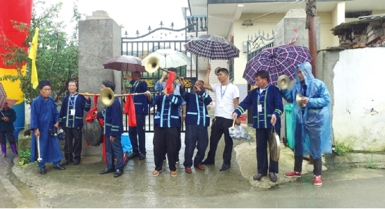 布依族青年們抬著族中神物銅鼓,吹著長(zhǎng)長(zhǎng)的號(hào)角,臉上滿是對(duì)民族節(jié)日的期待之情,驕傲又興奮;成群結(jié)隊(duì)的孩童穿著本民族傳統(tǒng)服飾,手拿錦帶,熱忱歡迎遠(yuǎn)道而來的客人;能歌善舞的布依阿姐笑臉相迎,唱著布依族的歌謠,一字排開堵在門前,客人們想要進(jìn)去參加這次盛會(huì),就得過三關(guān),干了三碗攔路酒。