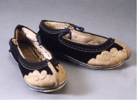 一般來說,一套傳統(tǒng)羌族服飾包括長衫、坎肩、褲子、腰帶、圍腰、裹肚、帽子、鞋子等。一件羊皮坎肩需要兩張羊皮,制作時將羊皮浸泡在草木灰中發(fā)酵,用木銼子除去腐肉、油污,直至羊皮光滑后再縫制。羊皮坎肩四季均可穿,有“羊皮褂子兩面穿,天晴下雨不離肩”的俗語??布鐭o領(lǐng)、無袖、無扣,四周露出羊毛,晴天毛向內(nèi)穿,雨天毛向外穿,可作墊背,負(fù)重等,也可防寒、避雨;圍腰屬于婦女特有,有半襟和滿襟兩種,多用深藍(lán)色或黑色布料。半襟圍腰略成長方形,長約70厘米、寬約60厘米,圖案完全對稱。圍腰上的包袋是重點(diǎn)裝飾部分。滿襟圍腰上窄下寬,呈“凸”字型,一般長為90厘米、底寬74厘米、胸寬20厘米,袋包多為一個大包或兩個相連的小包,位于圍腰中心,圍腰上布滿各種圖案,有團(tuán)花、火盆花、升子印、窗子格、燈籠須。這些復(fù)雜繁多、結(jié)構(gòu)巧妙的羌繡工藝,具有濃厚的羌族特色;羌族有草鞋這種日常鞋子,也有“云云鞋”。云云鞋的鞋尖微翹,貌似小船,鞋底較厚,以各色布包邊,用麻線密納,增強(qiáng)了鞋子的耐磨性。鞋幫繡有各形的彩色云紋,水波或杜鵑花紋式樣,故名“云云鞋”,也稱“花鞋”。羌族姑娘常將自己親手制作的花鞋送給小伙子,當(dāng)作定情信物?,F(xiàn)在,羌族人將云云鞋當(dāng)作節(jié)日的盛裝,只有在重大節(jié)日時才穿。