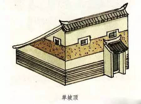 單坡頂就是只有一面坡的屋頂。它與我們常見的兩面坡屋頂有較大的不同,但從一面來看又有極大的相似性。我們甚至可以說,單坡屋頂就像是兩面坡屋頂被從中間一切兩半了。單片屋頂一般都用在不太重要的建筑或是附屬性的建筑上。在已發(fā)掘的商代宮殿遺址中,可以看到在商代即有單坡頂?shù)睦茸恿恕6F(xiàn)在的陜西、陜西等地的農(nóng)村,許多民居仍然使用單坡式的屋頂,成為現(xiàn)今較富有特色的一種民居形式。
