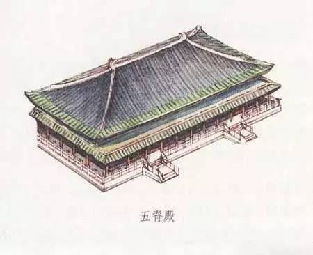 廡殿和歇山一樣是清式說法,在此之前它又有五脊殿等名稱。因?yàn)閺T殿式屋頂上共有五條脊,即,一條正脊和四條垂脊,所以稱為五脊殿。