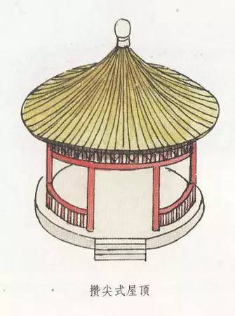 攢尖式屋頂沒有正脊,而只有垂脊,垂脊的多少根據(jù)實(shí)際建筑需要而定,一般雙數(shù)的居多,而單數(shù)的較少。如,有三條脊的、有四條脊的、有六條脊的、有八條脊的,分別稱為三角攢尖頂、四角攢尖頂、六角攢尖頂、八角攢尖頂?shù)取4送?,還有一種圓形攢尖頂式,也就是沒有垂脊。