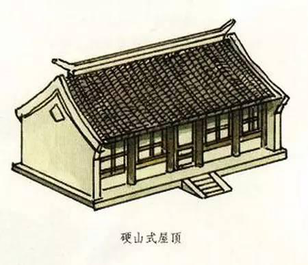 硬山式屋頂有一條正脊和四條垂脊。這種屋頂造型的最大特點(diǎn)是比較簡(jiǎn)單、樸素,只有前后兩面坡,而且屋頂在山墻墻頭處與山墻齊平,沒有伸出部分,山面裸露沒有變化。明、清時(shí)期及其后,硬山式屋頂廣泛地應(yīng)用于我國(guó)南北方的住宅建筑中。正因?yàn)樗燃?jí)比較低,所以屋面都是使用青瓦,并且是板瓦,不能使用筒瓦,更不能使用琉璃瓦。