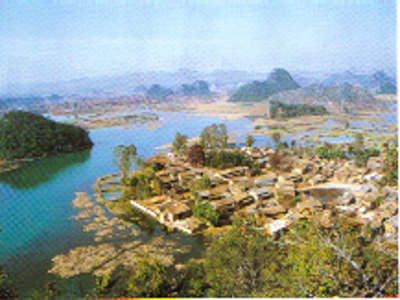 在一次學(xué)術(shù)會(huì)議上,筆者請(qǐng)教了首倡并主導(dǎo)“民族文化生態(tài)村”試點(diǎn)建設(shè)的尹紹亭教授,得知在他們首期的五個(gè)試點(diǎn)村落建設(shè)中,仙人洞村是比較成功的,于是在本項(xiàng)目的調(diào)查中,仙人洞村成為重點(diǎn)考察的對(duì)象之一?!跋扇硕匆妥逦幕鷳B(tài)村”位于云南丘北縣城西北16公里的普者黑湖畔。“普者黑”為當(dāng)?shù)匾妥迦瞿嵴Z(yǔ),意為“魚蝦多的湖潭”。普者黑實(shí)際是由眾多湖泊、河流構(gòu)成,總面積達(dá)165平方公里,已經(jīng)開發(fā)成由5個(gè)景區(qū)、56個(gè)景點(diǎn)組成的滇東南國(guó)家級(jí)著名旅游景區(qū)。