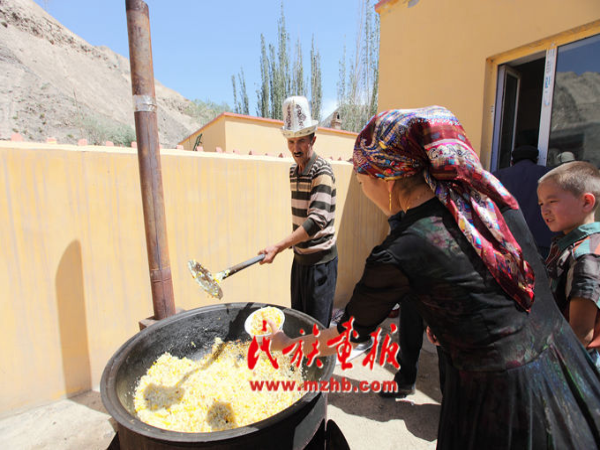 親朋好友們在院子里支起大鍋?zhàn)鲎ワ?、煮肉,招待賓客