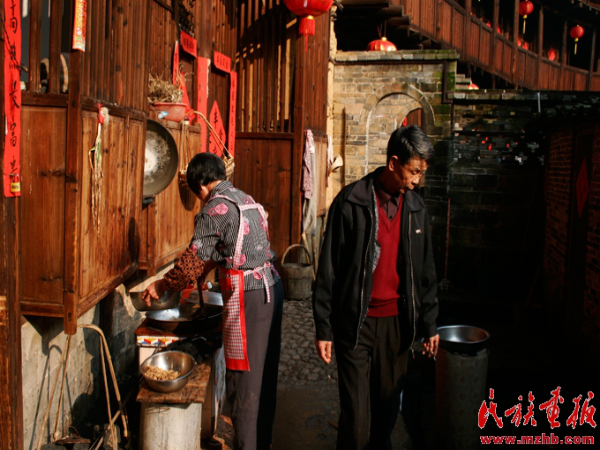 承啟樓所在的地區(qū)位于福建邊遠(yuǎn)山區(qū),農(nóng)田不多,除了水稻,山上的柿子樹和茶樹是這里的主要農(nóng)作物。以往,農(nóng)閑時節(jié),土樓里的人家主要是互相串門、喝茶、打牌,一派寧靜、閑適的農(nóng)家生活景象。