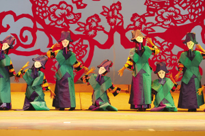 達斡爾族有語言沒有文字,然而在《神奇的達斡爾》演出現(xiàn)場,觀眾卻能夠感受到演員通過聲音和肢體語言記錄下來的活的文字,并且重新思考非物質文化遺產(chǎn)的意義所在。近兩個小時的演出,觀眾對達斡爾族的非物質文化遺產(chǎn)有了直觀的感受:達斡爾族搖籃,它的制式體現(xiàn)了達斡爾人對生命的思考和對自然的尊重;哈尼卡,達斡爾族傳統(tǒng)的剪紙藝術,伴隨著金色的童年,充實著達斡爾人色彩斑斕的心靈世界;達斡爾族頸力賽,勞動之余一項普及性民間傳統(tǒng)體育競技運動,給人們平常的生活帶來無窮的樂趣——它們,都于2007年被列入第一批內(nèi)蒙古自治區(qū)非物質文化遺產(chǎn)保護名錄。不僅如此,曲棍球(達斡爾語為“波依闊”,達斡爾族人喜愛的民間傳統(tǒng)體育項目)、魯日格勒(達斡爾族民間舞蹈,多表現(xiàn)狩獵生活和勞動場面)、烏春(達斡爾族特有的說唱藝術)還被列入第一批國家級非物質文化遺產(chǎn)保護名錄。