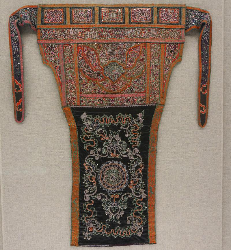水族服飾的特點是“短衣長裙”,且完全用火麻土布作面料,民國以后逐漸易裙為褲。水族服飾中最有代表性的是女性的服飾。水族女服多以水家布縫制,一般不繡花邊。而節(jié)日和婚嫁盛裝與平時穿戴截然不同。婦女刺繡的背帶更有藝術(shù)性。