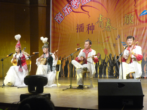 大膽創(chuàng)新、開門辦學(xué)、充分利用國內(nèi)外教育資源,是音樂學(xué)院實現(xiàn)跨越式發(fā)展的有效途徑。近年來,學(xué)院先后聘請了嚴良堃、于潤洋、楊鴻年、樊祖蔭、李松、迪麗拜爾、金湘、劉賓、陳銘道、管建華、閻惠昌、王建民、阿依吐拉、李毓珊、江東、迪麗娜爾·阿布都拉、努斯來提·瓦吉丁、劉剛、王蕾、何曉兵、項陽等幾十位國內(nèi)外著名學(xué)者和音樂舞蹈家長期擔(dān)任客座教授,舉辦了近百場學(xué)術(shù)交流報告。學(xué)院先后聘請了幾十位國內(nèi)外著名學(xué)者和藝術(shù)家長期擔(dān)任客座教授。同時邀請民間藝術(shù)大師走進課堂。學(xué)校開放式的辦學(xué)模式已經(jīng)形成,在藝術(shù)實踐中實施素質(zhì)教育培養(yǎng)具有“雙重音樂能力”的表演、教育人才已初顯成就。