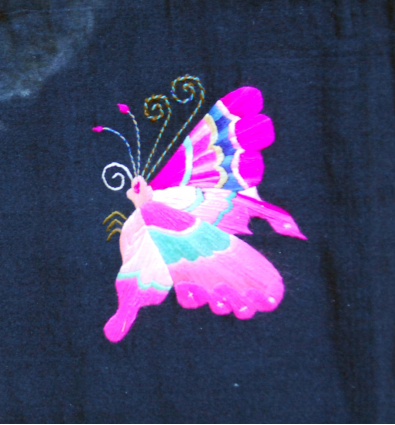 5.拽蜂,是在面料平底上繡制出立體的蝴蝶。由于繡工精細,找不出怎樣連接繡制的地方,好像從布地子上拽出來的蜂,“拽蜂”之得名,古代稱蝴蝶為蜂。