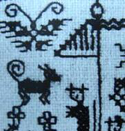 挑花(又叫十字挑花)是滿族民間刺繡中廣為流傳的一種針法。用交叉的十字組成抽象的圖案,粗獷簡潔,是人們日常生活用品中的主要裝飾圖案,色彩比較單一,后來發(fā)展為復雜的十字繡。