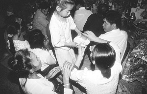 我問過玉金,給玉波籌辦賧奉物品花了多少錢。玉金對(duì)我說:“花多少錢?不知道。我們從來不算,想花多少就花多少。算了不好!”不過我還是私下算了算,買的東西雖然多,但都是些價(jià)格不高的日用品。而請(qǐng)客卻花了不少錢:與4戶人家合伙買了一頭2400元的水牛,470元買了兩頭豬,請(qǐng)了兩天的客,遠(yuǎn)近的親戚朋友都來了。這筆不少于5000元的花費(fèi)對(duì)人均年收入只有2000多元的地區(qū)來說,算得上是一筆大花銷了。